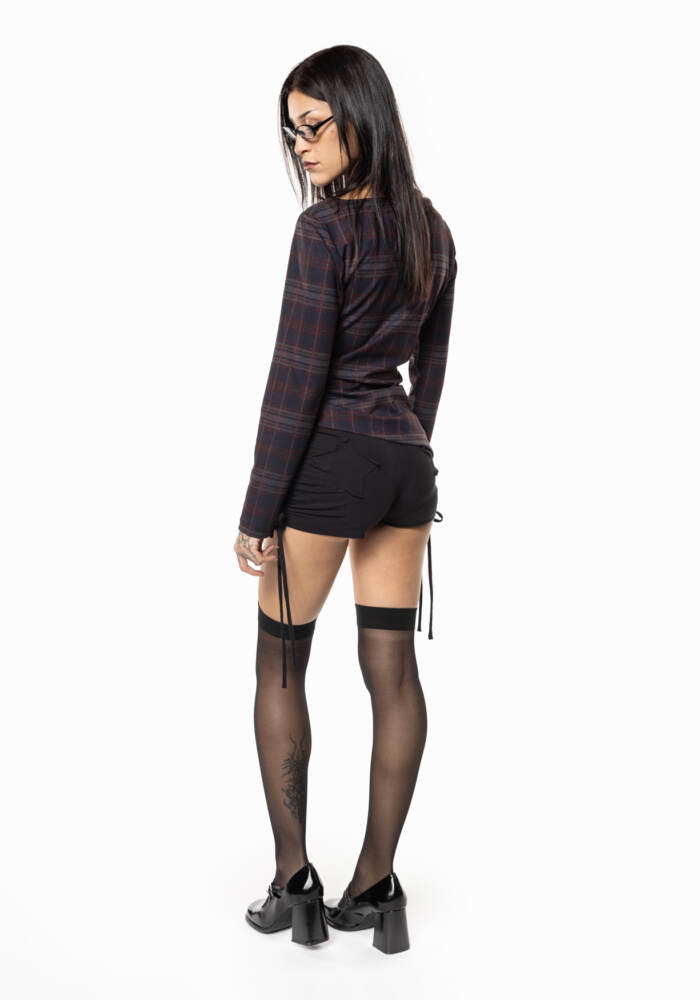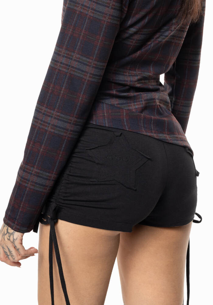 Shorts fruncidos hechos a mano en España con detalle de estrellas en la parte de atrás.